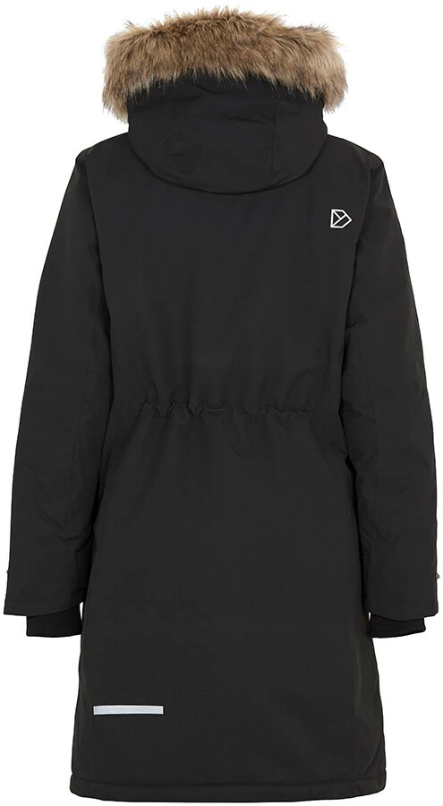 Erika is een warme en vrouwelijke klassieke parka van Didriksons. Volledig winddicht en waterdicht met getapete naden. Het is een perfecte combinatie van sportief en functioneel en is ontworpen voor dagelijks gebruik bij koud winterweer. Gemaakt van zacht polyester met een matte afwerking. Erika heeft een verstelbare capuchon met afneembare rand van imitatiebont en een hoge kraag. Tweewegrits met beschermende stormflap, twee voorzakken met drukknopen en twee zakken met waterafstotende ritsen. Twee binnenzakken, één met rits. De zoom, taille, manchetten en capuchon kunnen naar behoefte worden aangepast. Geribde binnenmanchetten met duimgaten. Reflecterende details zijn de naam en het logo van Didriksons, de tape in de voorzak en de ritsen. PFC-vrije waterafstotende afwerking.