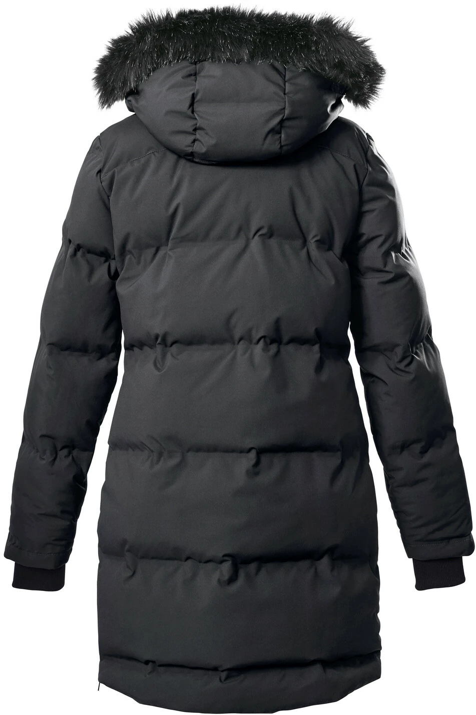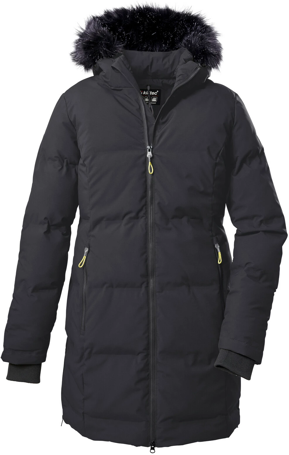 De lange parka in donslook van killtec is de perfecte allrounder voor het koudere seizoen. Het is dik gevoerd en water- en windbestendig met een waterkolom van 10.000 mm. Tegelijkertijd is het ademend met een waterdampdoorlaatbaarheid van 3.000 g/m²/24 h. De decoratief gelaste kamers, de opvallende ritslussen en het afneembare imitatiebont maken van deze damesparka een echte blikvanger. De parka scoort ook met een in de breedte verstelbare en afneembare capuchon, comfortabele gebreide manchetten en twee zakken aan de binnenkant. Deze jas is PFC-vrij.
