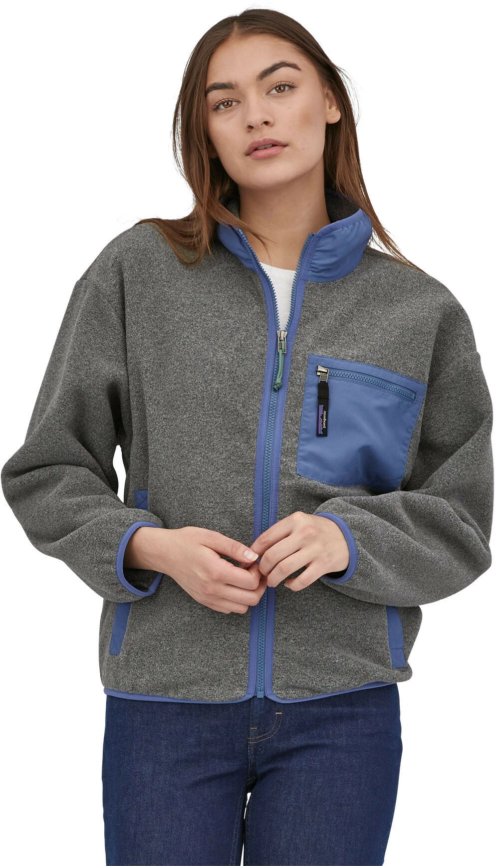 A relaxed, full-zip collared jacket made of Synchilla 100% recycled polyester double-sided fleece to keep you warm. Fair Trade Certified sewn.