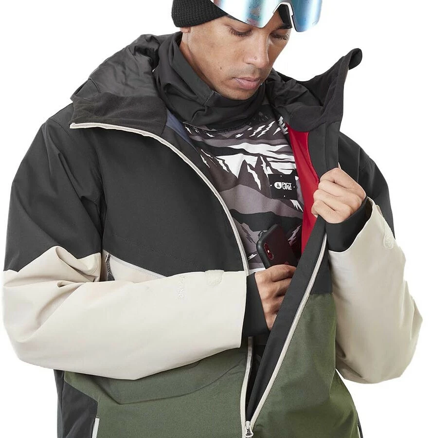 De verbeterde Picture DNA heeft een DRYPLAY 10K/10K membraan voor betere waterdichtheid en ademend vermogen, een Teflon EcoElite PFC-vrije duurzaam waterafstotende behandeling, een Thermal Dry System voering die zweet afvoert waar je het meest nodig hebt, en Thermal STD 80-grams isolatie om je warm te houden in alle omstandigheden. Voor ventilatie als de zon fel schijnt, kunt u de ritsen van de box openen. Kritisch gesealde naden houden vocht buiten. Voor een betere bescherming en pasvorm zijn de manchetten met polsmanchetten en de aan de broek bevestigde sneeuwvanger verstelbaar. De talrijke borst- en mouwzakken zorgen voor een snelle overgang van de liften naar de piste.
