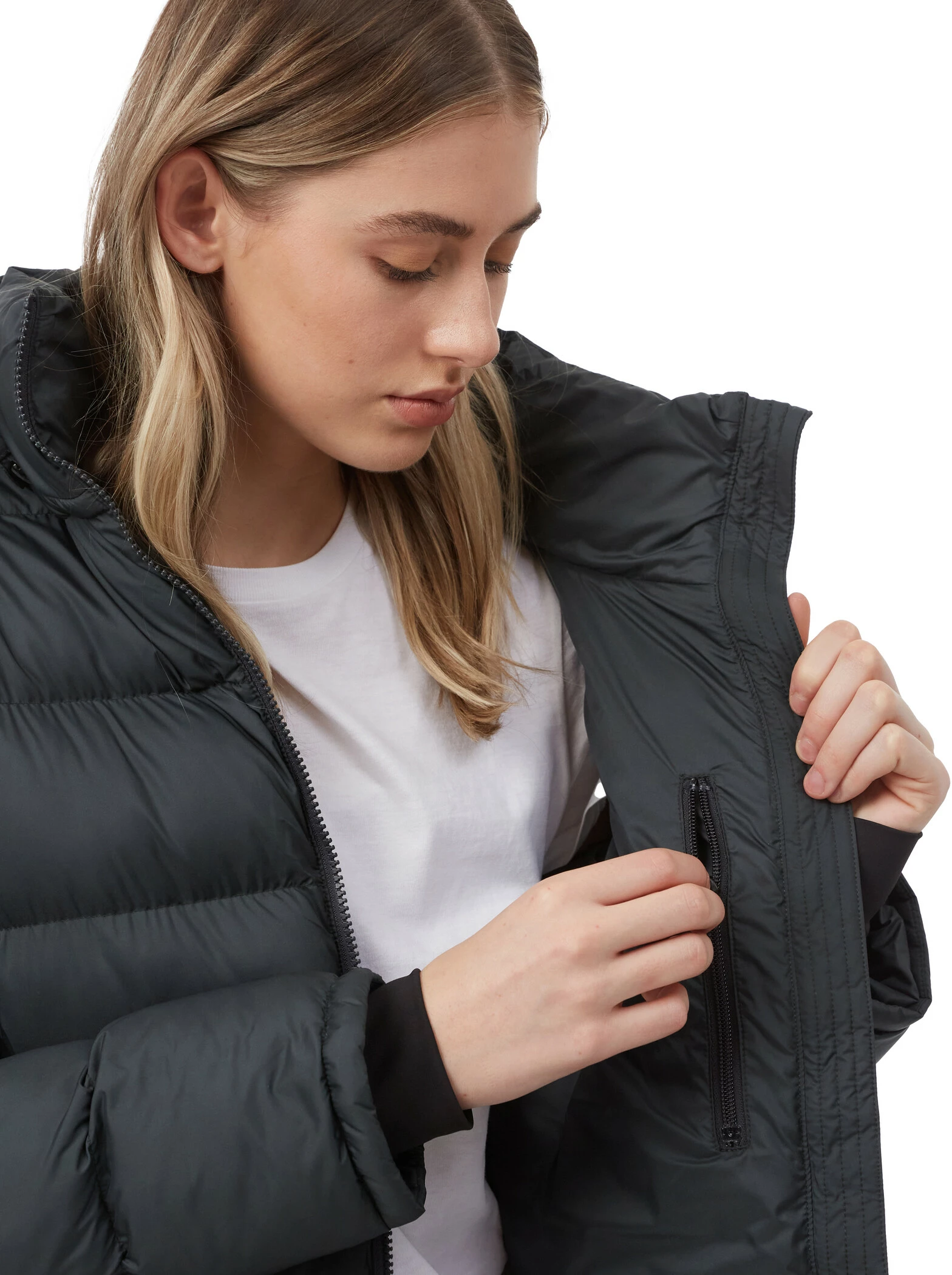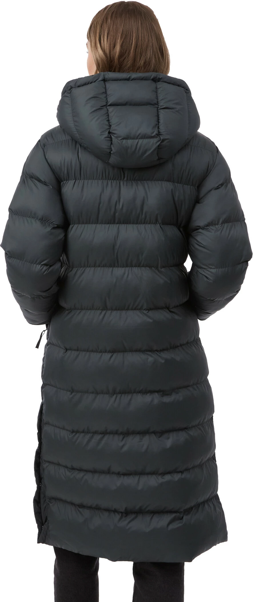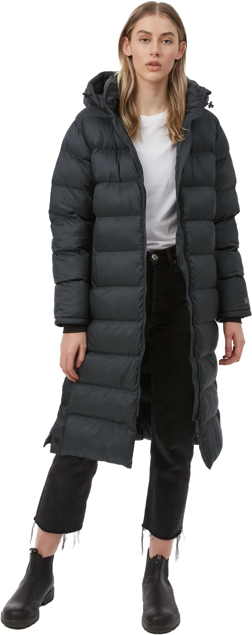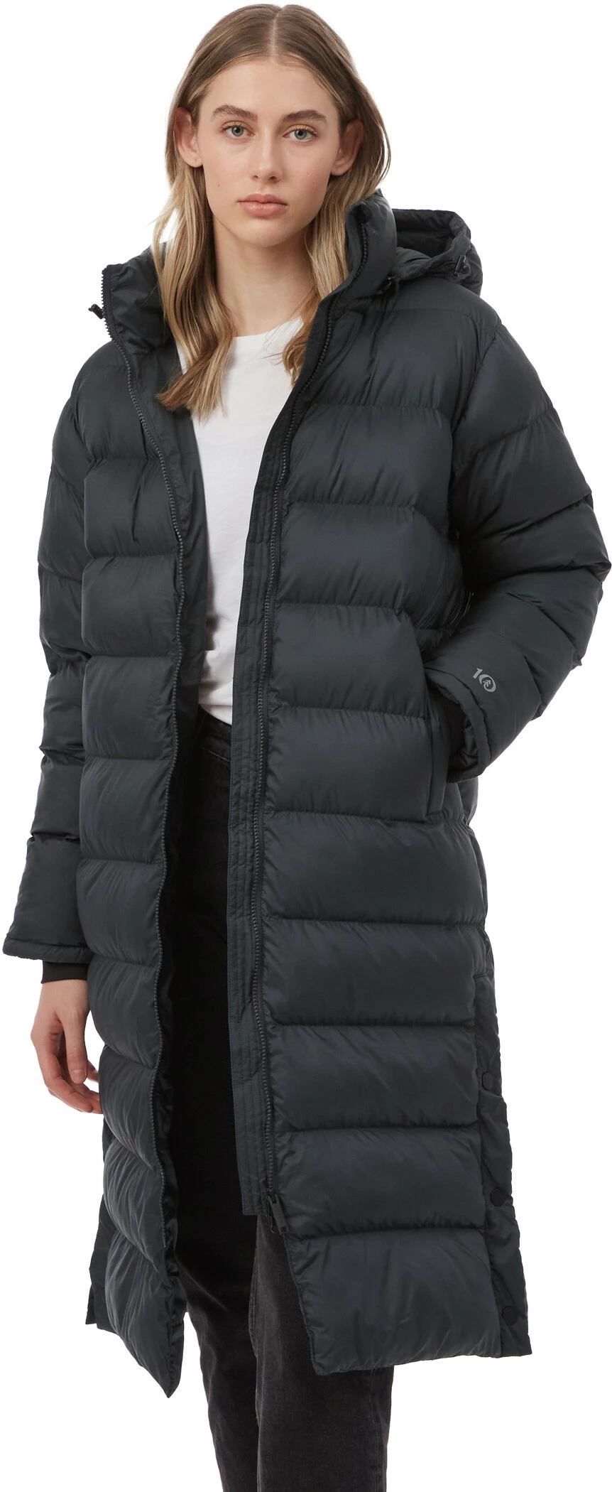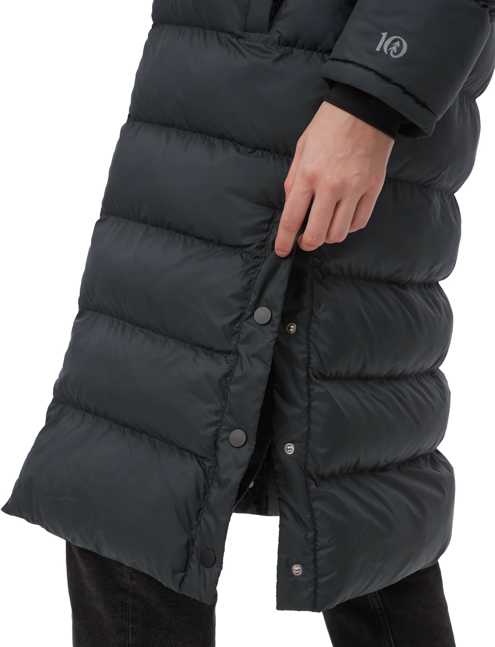 The long quilted jacket ends below the knee, making it extra warm and cosy thanks to the outer shell made from 100 % recycled polyester and the eco-friendly synthetic filling. Relaxed wearing comfort and freedom of movement are guaranteed thanks to the two-way zip and the open sides with snap closures. And thanks to the PFC-free durable water-repellent impregnation, the jacket protects against light rain and snow.